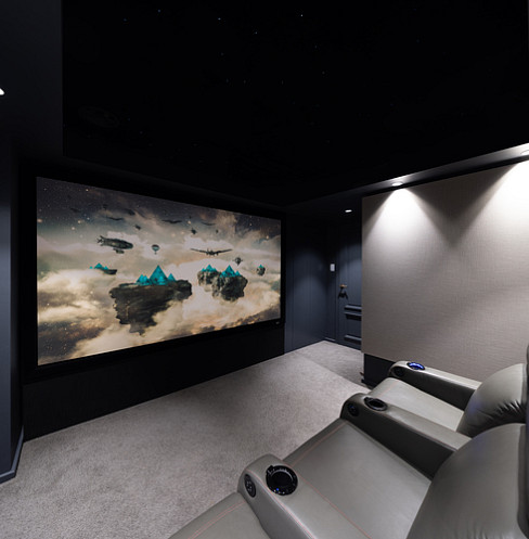Veluxa Cinema was created by transforming a small guest bedroom into a dedicated entertainment space for a family who loves movies, music, and karaoke. With a limited footprint and a firm budget, the challenge was to deliver a cinematic experience that felt immersive and exciting, without making the room feel cramped or overly technical.