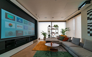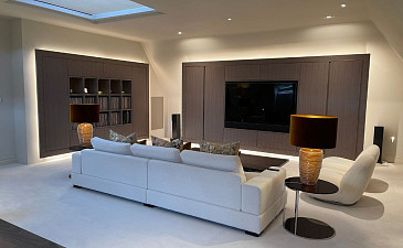 A home cinema's sole purpose is for viewing things – whether that’s Friday night films, football matches or TV shows. Home cinemas recreate the movie theatre atmosphere in your living space with technology like projectors, large TV screens, surround sound speakers and dimmable lights.