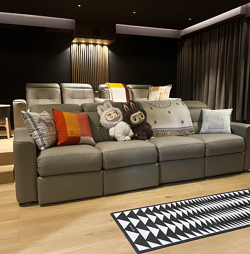 Serenity Cinema was created from an underused basement space that had previously failed as a home theater. Poor acoustics, inadequate ventilation, and ongoing issues meant the room was uncomfortable and rarely used. When the homeowners decided to revisit the idea, their priority was clear: the space had to feel healthy, calm, and inviting, not dark or oppressive.