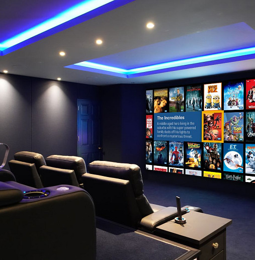 Sistema audiovisual (AV) multisala, Integración completa con el hogar inteligente, Lighting, Sala de cine en casa y sala multimedia