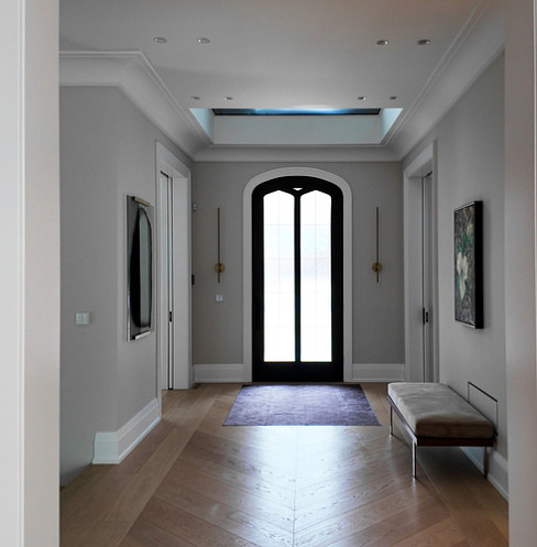 Los ajustes personalizados en los marcos y la colaboración con el constructor garantizaron que las mosquiteras Somfy y los bolsillos para persianas Lutron quedaran correctamente ocultos.