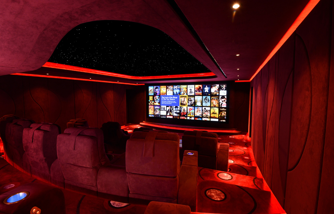 The ultimate cinema experience with the highest quality equipment, largest screens, and top-range surrond speakers. May include custom construction and luxury finishing.